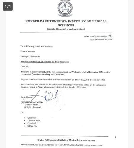 SUBJECT: EASTER HOILYDAYS All Christian staff and students are hereby informed that the institute will remain clo ...